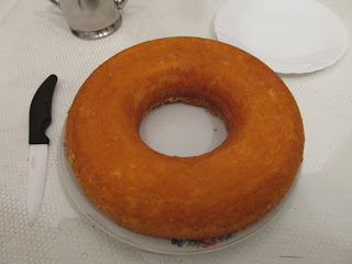 O pão-de-ló é caseiro, tem muito bom aspecto. Ficou baixinho, mas deve ser mais saboroso do que aqueles tradicionais. :)